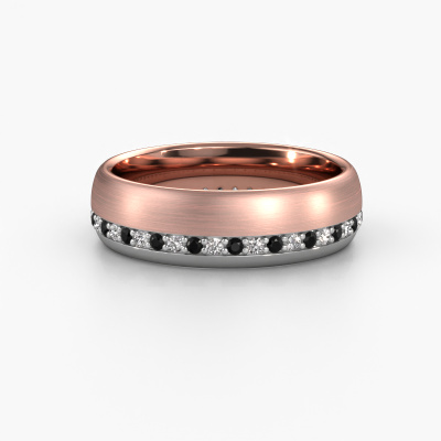 This luxury ladies wedding ring is a melting pot of ancient craftsmanship, love, passion and the latest techniques. It requires a keen eye, patience and a skilful hand to create this rose gold wedding ring to perfection. And perfection is what our goldsmiths strive for! This way, you create an exclusive ring, which is customized to your liking and made by hand in our own artisan studio. This luxury WH0303L36BMP wedding ring is set with black diamond 0.484 crt, is ±0.24 in wide and has a mat/shiny finish. You can choose the combination of precious metals of your preference in our online tool. Anything goes! It is wise to browse through the characteristics of each different precious metal. For example, gold and silver are softer metals. Carat is determined by the amount of added extra metals. If the goldsmith doesn't add a lot, carat is higher and the wedding ring will be softer. If he adds more metals, the jewel has a lower amount of carat. A softer precious metal can still be used for your luxury wedding ring! If you prefer a precious metal which will last a lifetime, we recommend platinum. This is the most solid and durable metal our goldsmith uses.Do you have specific wishes? Like a shiny ring, or a matte one? A wider band, or a smaller one? The possibilities of this wedding ring are endless. Be sure to contact our designers to adjust your ring to your personal taste. Did you see a ring somewhere, or do you have some special ideas of your own? Then don't hesitate to contact our designers and discuss your ideas for your own set of beautiful wedding rings. We are up for the challenge of creating the ring exactly the way you want it!After receiving your order, our goldsmiths will start the creative process of making your wedding rings. We don't keep stock. This is advantageous because these costs will not be passed on to you. Therefore, our quality wedding rings are always priced 30 percent lower than those of other jewellers.To make it easier for you, we offer a 30 day return policy. Check our terms and conditions.