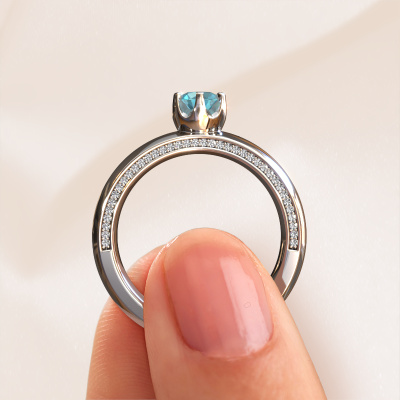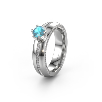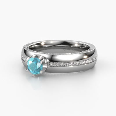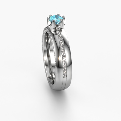 If you are looking for an exclusive, unique weddings ring with an exquisite look, this ring is perfect for you. Because it can be customized to your style, this weddings ring can be turned into a unique, exclusive piece of jewellery. This unique ladies weddings ring is a perfect combination of ancient craftsmanship, love, passion and the latest modern techniques. This unique WH0416L25E weddings ring is set with blue topaz 5 mm, is ±0.20 in wide and has a shiny finish. After designing your ring, our jewel designer will start working on it. He will make a graphic 3D design of your weddings ring. This can also be used to make a dummy ring. Simply order a dummy ring and see for yourself how your ring will turn out. Subsequently, our expert goldsmith will create your ring in our own artisan studio. We use eco-friendly gold, so you get a ring, we are proud of, which looks good inside and out. You can also send us your own gold. Because we create your ring by hand, we can use your own gold. Our goal is to create an exquisite sparkling weddings ring just as envisioned it!By the way, you can be inspired by this weddings ring and have it further adjusted to your taste. Do you prefer a smaller band or a wider one? Do you prefer a shiny ring or a matte one? Anything is possible. Also, if you have an idea of your own for extraordinary wedding rings, or if you have seen a beautiful set somewhere else that you really like and would like to have adjusted to your personal taste: no problem! don't hesitate to contact us. Our designers will gladly discuss your possibilities with you!After receiving your order, our goldsmiths will start the creative process of making your wedding rings. We don't keep stock. This is advantageous because these costs will not be passed on to you. Therefore, our quality wedding rings are always priced 30 percent lower than those of other jewellers.To make it easier for you, we offer a 30 day return policy. Check our terms and conditions.