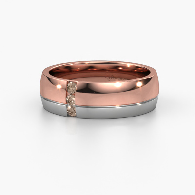 A unique two-tone rose gold ladies wedding ring, designed by you, and then artfully crafted by our goldsmith in our own artisan studio! A beautiful symbol, reflecting your love, which you carry with you for a lifetime! Each ring we offer is artfully forged by hand in our own crafting studio. This makes it possible for us to create you a ring which is customized to your liking, completely shiny your style. This modern WH0223L56A wedding ring is set with brown diamond, is ±0.24 in wide and has a shiny finish. The jewel designer, member of a specialized team, will make a graphic 3D design of your wedding ring. If it pleases you, you can also order a ring dummy so you can try it on and see your ring before creation. Subsequently, our goldsmith will create your unique wedding ring with great care in our own crafting studio. A meticulous job, because both creating as well as finishing your ring requires a keen eye. And that is what makes our craft special. Your unique wedding ring is the result of true passionate craftsmanship!By the way, you can be inspired by this wedding ring and have it further adjusted to your taste. Do you prefer a smaller band or a wider one? Do you prefer a shiny ring or a matte one? Anything is possible. Also, if you have an idea of your own for extraordinary wedding rings, or if you have seen a beautiful set somewhere else that you really like and would like to have adjusted to your personal taste: no problem! don't hesitate to contact us. Our designers will gladly discuss your possibilities with you!After receiving your order, our goldsmiths will start the creative process of making your wedding rings. We don't keep stock. This is advantageous because these costs will not be passed on to you. Therefore, our quality wedding rings are always priced 30 percent lower than those of other jewellers.To make it easier for you, we offer a 30 day return policy. Check our terms and conditions.