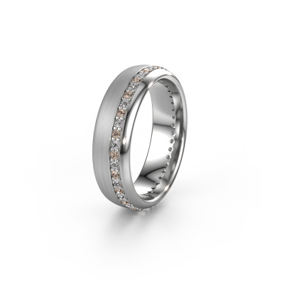 This luxury ladies wedding ring is a melting pot of ancient craftsmanship, love, passion and the latest techniques. It requires a keen eye, patience and a skilful hand to create this white gold wedding ring to perfection. And perfection is what our goldsmiths strive for! This way, you create an exclusive ring, which is customized to your liking and made by hand in our own artisan studio. This luxury WH0303L36BMP wedding ring is set with brown diamond 0.44 crt, is ±0.24 in wide and has a mat/shiny finish. You can choose the combination of precious metals of your preference in our online tool. Anything goes! It is wise to browse through the characteristics of each different precious metal. For example, gold and silver are softer metals. Carat is determined by the amount of added extra metals. If the goldsmith doesn't add a lot, carat is higher and the wedding ring will be softer. If he adds more metals, the jewel has a lower amount of carat. A softer precious metal can still be used for your luxury wedding ring! If you prefer a precious metal which will last a lifetime, we recommend platinum. This is the most solid and durable metal our goldsmith uses.Do you have specific wishes? Like a shiny ring, or a matte one? A wider band, or a smaller one? The possibilities of this wedding ring are endless. Be sure to contact our designers to adjust your ring to your personal taste. Did you see a ring somewhere, or do you have some special ideas of your own? Then don't hesitate to contact our designers and discuss your ideas for your own set of beautiful wedding rings. We are up for the challenge of creating the ring exactly the way you want it!After receiving your order, our goldsmiths will start the creative process of making your wedding rings. We don't keep stock. This is advantageous because these costs will not be passed on to you. Therefore, our quality wedding rings are always priced 30 percent lower than those of other jewellers.To make it easier for you, we offer a 30 day return policy. Check our terms and conditions.