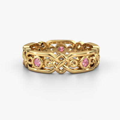 A unique ladies wedding ring, especially designed by our own jewel designers. An unusual ring that matches each style. This Celtic wedding ring Rosa is made by hand by our goldsmiths in our own crafting studio. By using a combination of the most modern techniques and ancient craftsmanship, your Rosa ring is created to perfection. This ladies wedding ring has an ±0.20 in width and has a shiny finish. Here, the Celtic gold wedding ring is shown. An exquisite wedding ring, a celebration of your wedding day!