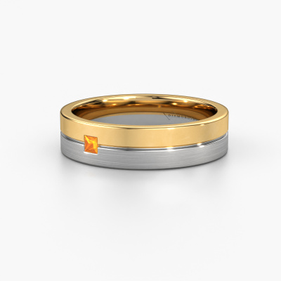 A unique two-tone gold ladies wedding ring, designed by you, and then artfully crafted by our goldsmith in our own artisan studio! A beautiful symbol, reflecting your love, which you carry with you for a lifetime! Each ring we offer is artfully forged by hand in our own crafting studio. This makes it possible for us to create you a ring which is customized to your liking, completely mat/shiny your style. This modern WH0201L15ASQPM wedding ring is set with citrin, is ±0.20 in wide and has a mat/shiny finish. You can choose the combination of precious metals of your preference in our online tool. Anything goes! It is wise to browse through the characteristics of each different precious metal. For example, gold and silver are softer metals. Carat is determined by the amount of added extra metals. If the goldsmith doesn't add a lot, carat is higher and the wedding ring will be softer. If he adds more metals, the jewel has a lower amount of carat. A softer precious metal can still be used for your modern wedding ring! If you prefer a precious metal which will last a lifetime, we recommend platinum. This is the most solid and durable metal our goldsmith uses.Be inspired by our designs, and adjust this wedding ring to your own personal taste: wider or smaller, shiny or matte? No problem! Even if you have ideas of your own for special wedding rings, our jewellery designers are lined up to help you design the ring of your dreams. don't hesitate to contact us!After receiving your order, our goldsmiths will start the creative process of making your wedding rings in our own crafting studio. We don't keep stock. This is advantageous because these costs will not be passed on to you. Therefore, we can offer the finest quality jewellery at exceptionally low prices.To make it easier for you, we offer a 30 day return policy. Check our terms and conditions.
