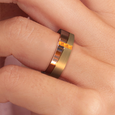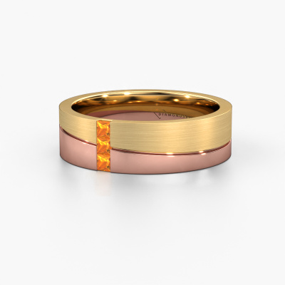 A unique two-tone rose gold ladies wedding ring, designed by you, and then artfully crafted by our goldsmith in our own artisan studio! A beautiful symbol, reflecting your love, which you carry with you for a lifetime! Each ring we offer is artfully forged by hand in our own crafting studio. This makes it possible for us to create you a ring which is customized to your liking, completely mat/shiny your style. This modern WH0906L16A wedding ring is set with citrin, is ±0.24 in wide and has a mat/shiny finish. You can choose the combination of precious metals of your preference in our online tool. Anything goes! It is wise to browse through the characteristics of each different precious metal. For example, gold and silver are softer metals. Carat is determined by the amount of added extra metals. If the goldsmith doesn't add a lot, carat is higher and the wedding ring will be softer. If he adds more metals, the jewel has a lower amount of carat. A softer precious metal can still be used for your modern wedding ring! If you prefer a precious metal which will last a lifetime, we recommend platinum. This is the most solid and durable metal our goldsmith uses.Do you have special preferences regarding your wedding ring? For instance, a smaller or a wider band? Or perhaps a shiny or a matte ring? There are numerous variations possible. You can always discuss the possibilities with our jewellery designers. If you have certain wedding rings in mind, our designers will gladly help by drawing the rings of your dreams. Be sure to contact us!After receiving your order, our goldsmiths will start the creative process of making your wedding rings. We don't keep stock. This is advantageous because these costs will not be passed on to you. Therefore, our quality wedding rings are always priced 30 percent lower than those of other jewellers.To make it easier for you, we offer a 30 day return policy. Check our terms and conditions.