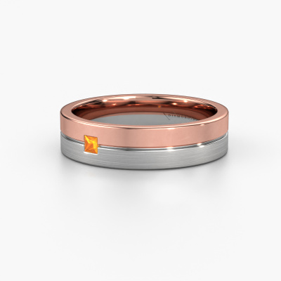 A unique two-tone rose gold ladies wedding ring, designed by you, and then artfully crafted by our goldsmith in our own artisan studio! A beautiful symbol, reflecting your love, which you carry with you for a lifetime! Each ring we offer is artfully forged by hand in our own crafting studio. This makes it possible for us to create you a ring which is customized to your liking, completely mat/shiny your style. This modern WH0201L15ASQPM wedding ring is set with citrin, is ±0.20 in wide and has a mat/shiny finish. You can choose the combination of precious metals of your preference in our online tool. Anything goes! It is wise to browse through the characteristics of each different precious metal. For example, gold and silver are softer metals. Carat is determined by the amount of added extra metals. If the goldsmith doesn't add a lot, carat is higher and the wedding ring will be softer. If he adds more metals, the jewel has a lower amount of carat. A softer precious metal can still be used for your modern wedding ring! If you prefer a precious metal which will last a lifetime, we recommend platinum. This is the most solid and durable metal our goldsmith uses.Be inspired by our designs, and adjust this wedding ring to your own personal taste: wider or smaller, shiny or matte? No problem! Even if you have ideas of your own for special wedding rings, our jewellery designers are lined up to help you design the ring of your dreams. don't hesitate to contact us!After receiving your order, our goldsmiths will start the creative process of making your wedding rings in our own crafting studio. We don't keep stock. This is advantageous because these costs will not be passed on to you. Therefore, we can offer the finest quality jewellery at exceptionally low prices.To make it easier for you, we offer a 30 day return policy. Check our terms and conditions.
