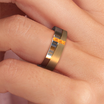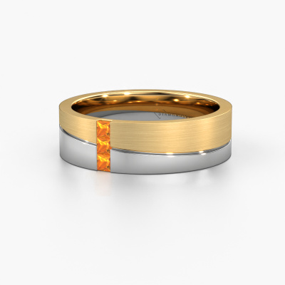 A unique two-tone white gold ladies wedding ring, designed by you, and then artfully crafted by our goldsmith in our own artisan studio! A beautiful symbol, reflecting your love, which you carry with you for a lifetime! Each ring we offer is artfully forged by hand in our own crafting studio. This makes it possible for us to create you a ring which is customized to your liking, completely mat/shiny your style. This modern WH0906L16A wedding ring is set with citrin, is ±0.24 in wide and has a mat/shiny finish. You can choose the combination of precious metals of your preference in our online tool. Anything goes! It is wise to browse through the characteristics of each different precious metal. For example, gold and silver are softer metals. Carat is determined by the amount of added extra metals. If the goldsmith doesn't add a lot, carat is higher and the wedding ring will be softer. If he adds more metals, the jewel has a lower amount of carat. A softer precious metal can still be used for your modern wedding ring! If you prefer a precious metal which will last a lifetime, we recommend platinum. This is the most solid and durable metal our goldsmith uses.Do you have special preferences regarding your wedding ring? For instance, a smaller or a wider band? Or perhaps a shiny or a matte ring? There are numerous variations possible. You can always discuss the possibilities with our jewellery designers. If you have certain wedding rings in mind, our designers will gladly help by drawing the rings of your dreams. Be sure to contact us!After receiving your order, our goldsmiths will start the creative process of making your wedding rings. We don't keep stock. This is advantageous because these costs will not be passed on to you. Therefore, our quality wedding rings are always priced 30 percent lower than those of other jewellers.To make it easier for you, we offer a 30 day return policy. Check our terms and conditions.