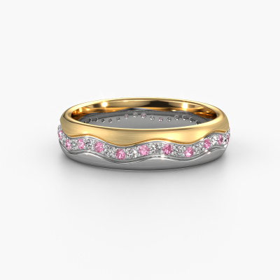 An extraordinary eternity ladies wedding ring! As unique as your relationship! No two people are alike and that is why you want a unique wedding ring. This modern WH0803L35BM wedding ring is made by our jewel designers and crafted by hand by our goldsmith. In that process, We use pure craftsmanship combined with the latest techniques to achieve the best result. Our goldsmith strives for absolute perfection. A unique, handmade wedding ring, made to memorialize your big day! This modern WH0803L35BM wedding ring is set with pink sapphire, is ±0.20 in wide and has a shiny finish. You can choose the combination of precious metals of your preference in our online tool. Anything goes! It is wise to browse through the characteristics of each different precious metal. For example, gold and silver are softer metals. Carat is determined by the amount of added extra metals. If the goldsmith doesn't add a lot, carat is higher and the wedding ring will be softer. If he adds more metals, the jewel has a lower amount of carat. A softer precious metal can still be used for your modern wedding ring! If you prefer a precious metal which will last a lifetime, we recommend platinum. This is the most solid and durable metal our goldsmith uses.This wedding ring can also serve as a source of inspiration. Would you like the ring to have a matte or shiny finish (at no additional cost), or would you prefer it to be wider or narrower? Anything is possible. Because there are countless variations, we can’t show everything on our website. Do you have an idea for beautiful wedding rings, or have you seen a stunning set of wedding rings elsewhere? Feel free to contact us; our designers are ready to assist you.After receiving your order, our goldsmiths will start the creative process of making your wedding rings. We don't keep stock. This is advantageous because these costs will not be passed on to you. Therefore, our quality wedding rings are always priced 30 percent lower than those of other jewellers.To make it easier for you, we offer a 30 day return policy. Check our terms and conditions.