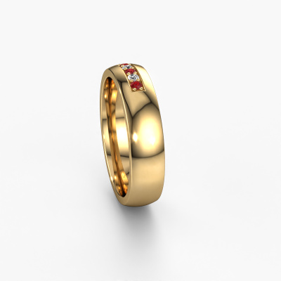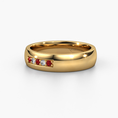 To create your ladies wedding ring in our artisan studio, we use the most modern techniques, combined with ancient craftsmanship. The end result is this modern WH0111L25BP wedding ring, which is crafted to perfection by hand by our goldsmiths. A ring that fills us with pride. This gold WH0111L25BP ladies wedding ring with court profile has an ±0.20 in width and has a shiny finish with ruby. Choosing a wedding ring is not done on a whim. In the end, you want a ring that completely matches your style and preferences. A reflection of your love and relationship. A ring to last a lifetime. A symbol of all that unites you. Creating your dream ring is what gets us excited. This is artfully done by hand in our own crafting studio, so we can create your ring to perfection. The most rewarding job in the world!Be inspired by our designs, and adjust this wedding ring to your own personal taste: wider or smaller, shiny or matte? No problem! Even if you have ideas of your own for special wedding rings, our jewellery designers are lined up to help you design the ring of your dreams. don't hesitate to contact us!By combining our modern techniques with ancient crafting, we can design and customize the finest quality jewels with the utmost care for you at the best price. Our wedding rings are always priced 30% lower than those of other jewellers. We make wedding rings to order so we don't have to maintain a large stock.To make it easier for you, we offer a 30 day return policy. Check our terms and conditions.