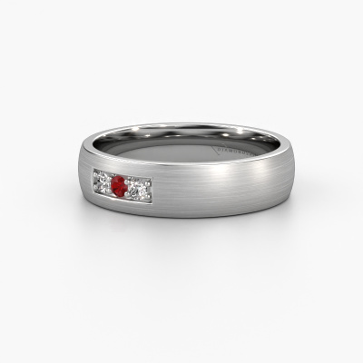 To create your ladies wedding ring in our artisan studio, we use the most modern techniques, combined with ancient craftsmanship. The end result is this modern WH0110L25AM wedding ring, which is crafted to perfection by hand by our goldsmiths. A ring that fills us with pride. This white gold WH0110L25AM ladies wedding ring with court profile has an ±0.20 in width and has a mat/shiny finish with ruby. You can choose the combination of precious metals of your preference in our online tool. Anything goes! It is wise to browse through the characteristics of each different precious metal. For example, gold and silver are softer metals. Carat is determined by the amount of added extra metals. If the goldsmith doesn't add a lot, carat is higher and the wedding ring will be softer. If he adds more metals, the jewel has a lower amount of carat. A softer precious metal can still be used for your modern wedding ring! If you prefer a precious metal which will last a lifetime, we recommend platinum. This is the most solid and durable metal our goldsmith uses.Do you have specific wishes? Like a shiny ring, or a matte one? A wider band, or a smaller one? The possibilities of this wedding ring are endless. Be sure to contact our designers to adjust your ring to your personal taste. Did you see a ring somewhere, or do you have some special ideas of your own? Then don't hesitate to contact our designers and discuss your ideas for your own set of beautiful wedding rings. We are up for the challenge of creating the ring exactly the way you want it!After receiving your order, our goldsmiths will passionately start the creative process of making your wedding rings in our own artisan studio. Because we do not maintain a large stockpile, we can offer our jewellery at a lower price than other jewellers. Our pricing is proof of that! We offer top quality jewels at lowest price, guaranteed.To make it easier for you, we offer a 30 day return policy. Check our terms and conditions.