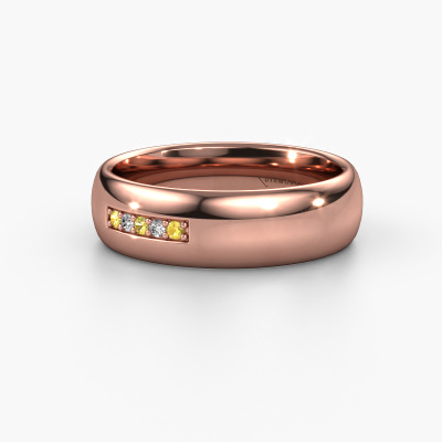 To create your ladies wedding ring in our artisan studio, we use the most modern techniques, combined with ancient craftsmanship. The end result is this classic WH0111L36BP wedding ring, which is crafted to perfection by hand by our goldsmiths. A ring that fills us with pride. This rose gold WH0111L36BP ladies wedding ring with court profile has an ±0.24 in width and has a shiny finish with yellow sapphire. The jewel designer, member of a specialized team, will make a graphic 3D design of your wedding ring. If it pleases you, you can also order a ring dummy so you can try it on and see your ring before creation. Subsequently, our goldsmith will create your unique wedding ring with great care in our own crafting studio. A meticulous job, because both creating as well as finishing your ring requires a keen eye. And that is what makes our craft special. Your unique wedding ring is the result of true passionate craftsmanship!This wedding ring can also serve as a source of inspiration. Would you like the ring to have a matte or shiny finish (at no additional cost), or would you prefer it to be wider or narrower? Anything is possible. Because there are countless variations, we can’t show everything on our website. Do you have an idea for beautiful wedding rings, or have you seen a stunning set of wedding rings elsewhere? Feel free to contact us; our designers are ready to assist you.After receiving your order, our goldsmiths will start the creative process of making your wedding rings. We don't keep stock. This is advantageous because these costs will not be passed on to you. Therefore, our quality wedding rings are always priced 30 percent lower than those of other jewellers.To make it easier for you, we offer a 30 day return policy. Check our terms and conditions.