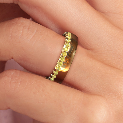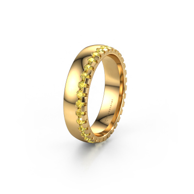 This design ladies wedding ring is a stunning, contemporary wedding ring which truly symbolizes your unique love! Perfectly suited for men with a contemporary style. Simply customize the ring to your liking. Our goldsmith would take on any challenge of creating a perfect ring and will work on your ring, designed by you, in our own artisan studio. He will carefully and passionately create your WH6122L25B wedding ring by hand whilst using the most modern techniques, combined with pure craftsmanship. And this results in a unique, contemporary ring! This design WH6122L25B wedding ring is set with round yellow sapphire, is ±0.20 in wide and has a shiny finish. You can choose the combination of precious metals of your preference in our online tool. Anything goes! It is wise to browse through the characteristics of each different precious metal. For example, gold and silver are softer metals. Carat is determined by the amount of added extra metals. If the goldsmith doesn't add a lot, carat is higher and the wedding ring will be softer. If he adds more metals, the jewel has a lower amount of carat. A softer precious metal can still be used for your design wedding ring! If you prefer a precious metal which will last a lifetime, we recommend platinum. This is the most solid and durable metal our goldsmith uses.Be inspired by our designs, and adjust this wedding ring to your own personal taste: wider or smaller, shiny or matte? No problem! Even if you have ideas of your own for special wedding rings, our jewellery designers are lined up to help you design the ring of your dreams. don't hesitate to contact us!After receiving your order, our goldsmiths will passionately start the creative process of making your wedding rings in our own artisan studio. Because we do not maintain a large stockpile, we can offer our jewellery at a lower price than other jewellers. Our pricing is proof of that! We offer top quality jewels at lowest price, guaranteed.To make it easier for you, we offer a 30 day return policy. Check our terms and conditions.
