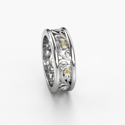 How do you like this beautiful, vintage ladies wedding ring? A new design, based on old, vintage patterns. Did you know it can be customized to your style? Our goldsmith creates according to ancient craftsmanship and would be honoured to customize your wedding rings to your liking with the utmost precision. This 14 Carat vintage Bibi wedding ring is set with yellow sapphire is ±0.28 in wide and has a shiny finish.