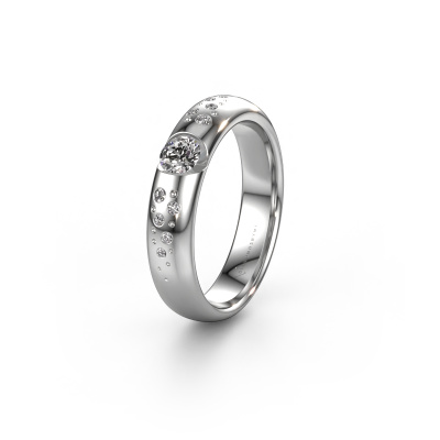 This modern ladies wedding ring is a melting pot of ancient craftsmanship, love, passion and the latest techniques. It requires a keen eye, patience and a skilful hand to create this white gold wedding ring to perfection. And perfection is what our goldsmiths strive for! This way, you create an exclusive ring, which is customized to your liking and made by hand in our own artisan studio. This modern WH2104L34A wedding ring is set with custom diamond 4 mm, is ±0.18 in wide and has a shiny finish. Gold represents love and therefore our goldsmith loves using it in the design of your modern wedding ring. We are a proud member of the Responsible Jewellery Council. This means we only use eco-friendly gold. Something we take great pride in, obviously. It is also possible to use your own gold in the design of your wedding ring. Each jewel is made by hand in our own artisan studio so we can offer this option. This gives you the opportunity to add an extra personal touch to your ring. A ring with its own history!Do you have specific wishes? Like a shiny ring, or a matte one? A wider band, or a smaller one? The possibilities of this wedding ring are endless. Be sure to contact our designers to adjust your ring to your personal taste. Did you see a ring somewhere, or do you have some special ideas of your own? Then don't hesitate to contact our designers and discuss your ideas for your own set of beautiful wedding rings. We are up for the challenge of creating the ring exactly the way you want it!Because we design our wedding rings ourselves, and deliver it directly to you, we can offer you wedding rings at a price you won't find anywhere else. Our rings are made to order, which helps prevent excess supplies, so we can make you a great price offer.To make it easier for you, we offer a 30 day return policy. Check our terms and conditions.