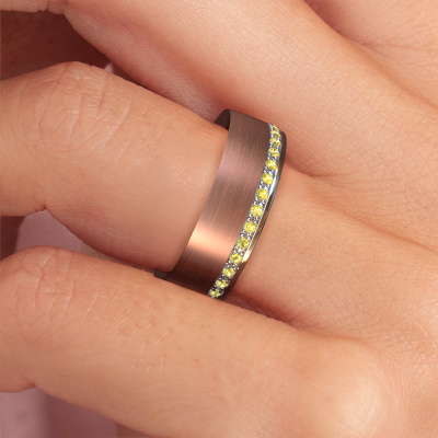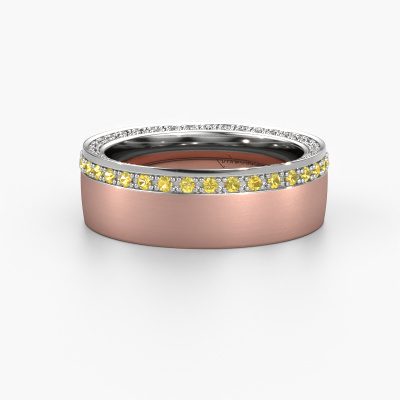 The design Eternity wedding ring is a ring with a beautiful symbolic meaning. Because there appears to be no beginning nor end to the row of yellow sapphire. A beautiful way of expressing your everlasting love. A ring to wear until the end of all time, as a symbol of your union. This special WH2224L26C8 ladies wedding ring has a width of ±0.26 in and is set with yellow sapphire 1.3 mm. Choosing a wedding ring is not done on a whim. In the end, you want a ring that completely matches your style and preferences. A reflection of your love and relationship. A ring to last a lifetime. A symbol of all that unites you. Creating your dream ring is what gets us excited. This is artfully done by hand in our own crafting studio, so we can create your ring to perfection. The most rewarding job in the world!Be inspired by our designs, and adjust this wedding ring to your own personal taste: wider or smaller, shiny or matte? No problem! Even if you have ideas of your own for special wedding rings, our jewellery designers are lined up to help you design the ring of your dreams. don't hesitate to contact us!After receiving your order, our goldsmiths will start the creative process of making your wedding rings in our own crafting studio. We don't keep stock. This is advantageous because these costs will not be passed on to you. Therefore, we can offer the finest quality jewellery at exceptionally low prices.To make it easier for you, we offer a 30 day return policy. Check our terms and conditions.