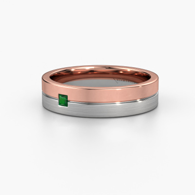 A unique two-tone rose gold ladies wedding ring, designed by you, and then artfully crafted by our goldsmith in our own artisan studio! A beautiful symbol, reflecting your love, which you carry with you for a lifetime! Each ring we offer is artfully forged by hand in our own crafting studio. This makes it possible for us to create you a ring which is customized to your liking, completely mat/shiny your style. This modern WH0201L15ASQPM wedding ring is set with emerald, is ±0.20 in wide and has a mat/shiny finish. You can choose the combination of precious metals of your preference in our online tool. Anything goes! It is wise to browse through the characteristics of each different precious metal. For example, gold and silver are softer metals. Carat is determined by the amount of added extra metals. If the goldsmith doesn't add a lot, carat is higher and the wedding ring will be softer. If he adds more metals, the jewel has a lower amount of carat. A softer precious metal can still be used for your modern wedding ring! If you prefer a precious metal which will last a lifetime, we recommend platinum. This is the most solid and durable metal our goldsmith uses.Be inspired by our designs, and adjust this wedding ring to your own personal taste: wider or smaller, shiny or matte? No problem! Even if you have ideas of your own for special wedding rings, our jewellery designers are lined up to help you design the ring of your dreams. don't hesitate to contact us!After receiving your order, our goldsmiths will start the creative process of making your wedding rings in our own crafting studio. We don't keep stock. This is advantageous because these costs will not be passed on to you. Therefore, we can offer the finest quality jewellery at exceptionally low prices.To make it easier for you, we offer a 30 day return policy. Check our terms and conditions.