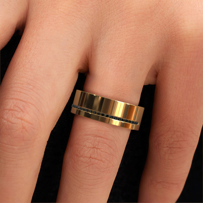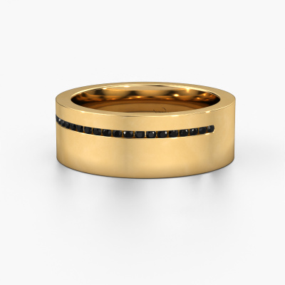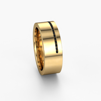 A truly stylish 14 Carat modern wedding ring! This exquisite ladies wedding ring, as shown above, is set with round black diamond. Our goldsmiths make each gold wedding ring by hand in our own artisan studio and because of that, the black diamonds are set with the utmost precision. This causes light to reflect evenly from every angle of the black diamond. The width of this modern WH0143L17BP wedding ring is ±0.28 in and the finish is shiny. The jewel designer, member of a specialized team, will make a graphic 3D design of your wedding ring. If it pleases you, you can also order a ring dummy so you can try it on and see your ring before creation. Subsequently, our goldsmith will create your unique wedding ring with great care in our own crafting studio. A meticulous job, because both creating as well as finishing your ring requires a keen eye. And that is what makes our craft special. Your unique wedding ring is the result of true passionate craftsmanship!Be inspired by our designs, and adjust this wedding ring to your own personal taste: wider or smaller, shiny or matte? No problem! Even if you have ideas of your own for special wedding rings, our jewellery designers are lined up to help you design the ring of your dreams. don't hesitate to contact us!After receiving your order, our goldsmiths will passionately start the creative process of making your wedding rings in our own artisan studio. Because we do not maintain a large stockpile, we can offer our jewellery at a lower price than other jewellers. Our pricing is proof of that! We offer top quality jewels at lowest price, guaranteed.To make it easier for you, we offer a 30 day return policy. Check our terms and conditions.