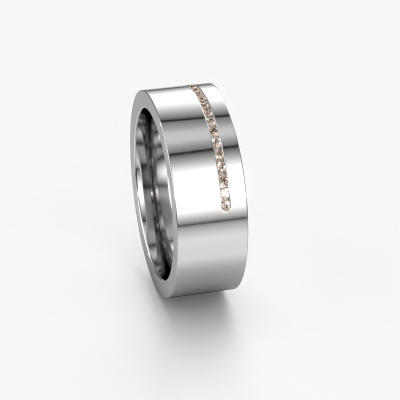 A truly stylish 14 Carat modern wedding ring! This exquisite ladies wedding ring, as shown above, is set with round brown diamond. Our goldsmiths make each white gold wedding ring by hand in our own artisan studio and because of that, the brown diamonds are set with the utmost precision. This causes light to reflect evenly from every angle of the brown diamond. The width of this modern WH0143L17BP wedding ring is ±0.28 in and the finish is shiny. The jewel designer, member of a specialized team, will make a graphic 3D design of your wedding ring. If it pleases you, you can also order a ring dummy so you can try it on and see your ring before creation. Subsequently, our goldsmith will create your unique wedding ring with great care in our own crafting studio. A meticulous job, because both creating as well as finishing your ring requires a keen eye. And that is what makes our craft special. Your unique wedding ring is the result of true passionate craftsmanship!Be inspired by our designs, and adjust this wedding ring to your own personal taste: wider or smaller, shiny or matte? No problem! Even if you have ideas of your own for special wedding rings, our jewellery designers are lined up to help you design the ring of your dreams. don't hesitate to contact us!After receiving your order, our goldsmiths will passionately start the creative process of making your wedding rings in our own artisan studio. Because we do not maintain a large stockpile, we can offer our jewellery at a lower price than other jewellers. Our pricing is proof of that! We offer top quality jewels at lowest price, guaranteed.To make it easier for you, we offer a 30 day return policy. Check our terms and conditions.