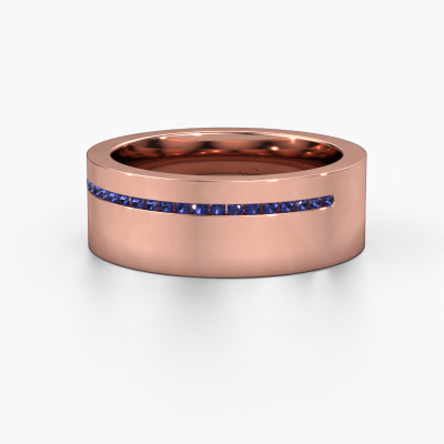 A truly stylish 14 Carat modern wedding ring! This exquisite ladies wedding ring, as shown above, is set with round sapphire. Our goldsmiths make each rose gold wedding ring by hand in our own artisan studio and because of that, the sapphire are set with the utmost precision. This causes light to reflect evenly from every angle of the sapphire. The width of this modern WH0143L17BP wedding ring is ±0.28 in and the finish is shiny. The jewel designer, member of a specialized team, will make a graphic 3D design of your wedding ring. If it pleases you, you can also order a ring dummy so you can try it on and see your ring before creation. Subsequently, our goldsmith will create your unique wedding ring with great care in our own crafting studio. A meticulous job, because both creating as well as finishing your ring requires a keen eye. And that is what makes our craft special. Your unique wedding ring is the result of true passionate craftsmanship!Be inspired by our designs, and adjust this wedding ring to your own personal taste: wider or smaller, shiny or matte? No problem! Even if you have ideas of your own for special wedding rings, our jewellery designers are lined up to help you design the ring of your dreams. don't hesitate to contact us!After receiving your order, our goldsmiths will passionately start the creative process of making your wedding rings in our own artisan studio. Because we do not maintain a large stockpile, we can offer our jewellery at a lower price than other jewellers. Our pricing is proof of that! We offer top quality jewels at lowest price, guaranteed.To make it easier for you, we offer a 30 day return policy. Check our terms and conditions.