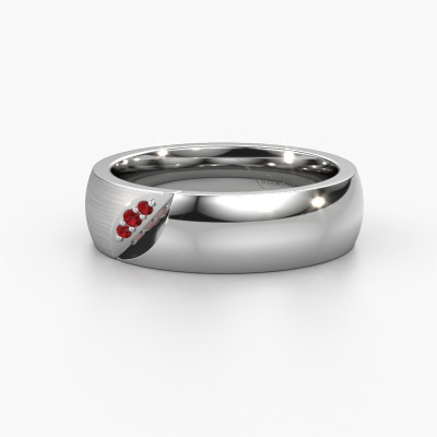 A truly stylish modern wedding ring! This exquisite ladies wedding ring, as shown above, is set with round ruby. Our goldsmiths make each platinum wedding ring by hand in our own artisan studio and because of that, the ruby are set with the utmost precision. This causes light to reflect evenly from every angle of the ruby. The width of this modern WH2007L wedding ring is ±0.24 in and the finish is mat/shiny. The jewel designer, member of a specialized team, will make a graphic 3D design of your wedding ring. If it pleases you, you can also order a ring dummy so you can try it on and see your ring before creation. Subsequently, our goldsmith will create your unique wedding ring with great care in our own crafting studio. A meticulous job, because both creating as well as finishing your ring requires a keen eye. And that is what makes our craft special. Your unique wedding ring is the result of true passionate craftsmanship!This wedding ring can also serve as a source of inspiration. Would you like the ring to have a matte or shiny finish (at no additional cost), or would you prefer it to be wider or narrower? Anything is possible. Because there are countless variations, we can’t show everything on our website. Do you have an idea for beautiful wedding rings, or have you seen a stunning set of wedding rings elsewhere? Feel free to contact us; our designers are ready to assist you.After receiving your order, our goldsmiths will start the creative process of making your wedding rings in our own crafting studio. We don't keep stock. This is advantageous because these costs will not be passed on to you. Therefore, we can offer the finest quality jewellery at exceptionally low prices.To make it easier for you, we offer a 30 day return policy. Check our terms and conditions.
