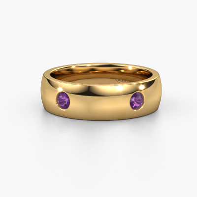 A truly stylish 14 Carat exclusive wedding ring! This exquisite ladies wedding ring, as shown above, is set with round amethyst. Our goldsmiths make each gold wedding ring by hand in our own artisan studio and because of that, the amethysten are set with the utmost precision. This causes light to reflect evenly from every angle of the amethyst. The width of this exclusive WH0104L26BP wedding ring is ±0.24 in and the finish is shiny. Gold represents love and therefore our goldsmith loves using it in the design of your exclusive wedding ring. We are a proud member of the Responsible Jewellery Council. This means we only use eco-friendly gold. Something we take great pride in, obviously. It is also possible to use your own gold in the design of your wedding ring. Each jewel is made by hand in our own artisan studio so we can offer this option. This gives you the opportunity to add an extra personal touch to your ring. A ring with its own history!By the way, you can be inspired by this wedding ring and have it further adjusted to your taste. Do you prefer a smaller band or a wider one? Do you prefer a shiny ring or a matte one? Anything is possible. Also, if you have an idea of your own for extraordinary wedding rings, or if you have seen a beautiful set somewhere else that you really like and would like to have adjusted to your personal taste: no problem! don't hesitate to contact us. Our designers will gladly discuss your possibilities with you!Because we design our wedding rings ourselves, and deliver it directly to you, we can offer you wedding rings at a price you won't find anywhere else. Our rings are made to order, which helps prevent excess supplies, so we can make you a great price offer.To make it easier for you, we offer a 30 day return policy. Check our terms and conditions.
