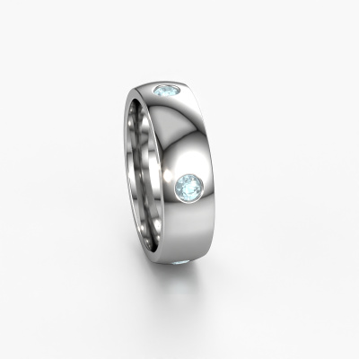 A truly stylish 14 Carat exclusive wedding ring! This exquisite ladies wedding ring, as shown above, is set with round aquamarine. Our goldsmiths make each white gold wedding ring by hand in our own artisan studio and because of that, the aquamarine are set with the utmost precision. This causes light to reflect evenly from every angle of the aquamarine. The width of this exclusive WH0104L26BP wedding ring is ±0.24 in and the finish is shiny. Gold represents love and therefore our goldsmith loves using it in the design of your exclusive wedding ring. We are a proud member of the Responsible Jewellery Council. This means we only use eco-friendly gold. Something we take great pride in, obviously. It is also possible to use your own gold in the design of your wedding ring. Each jewel is made by hand in our own artisan studio so we can offer this option. This gives you the opportunity to add an extra personal touch to your ring. A ring with its own history!By the way, you can be inspired by this wedding ring and have it further adjusted to your taste. Do you prefer a smaller band or a wider one? Do you prefer a shiny ring or a matte one? Anything is possible. Also, if you have an idea of your own for extraordinary wedding rings, or if you have seen a beautiful set somewhere else that you really like and would like to have adjusted to your personal taste: no problem! don't hesitate to contact us. Our designers will gladly discuss your possibilities with you!Because we design our wedding rings ourselves, and deliver it directly to you, we can offer you wedding rings at a price you won't find anywhere else. Our rings are made to order, which helps prevent excess supplies, so we can make you a great price offer.To make it easier for you, we offer a 30 day return policy. Check our terms and conditions.