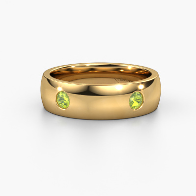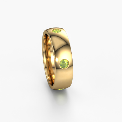 A truly stylish 14 Carat exclusive wedding ring! This exquisite ladies wedding ring, as shown above, is set with round peridot. Our goldsmiths make each gold wedding ring by hand in our own artisan studio and because of that, the peridot are set with the utmost precision. This causes light to reflect evenly from every angle of the peridot. The width of this exclusive WH0104L26BP wedding ring is ±0.24 in and the finish is shiny. Gold represents love and therefore our goldsmith loves using it in the design of your exclusive wedding ring. We are a proud member of the Responsible Jewellery Council. This means we only use eco-friendly gold. Something we take great pride in, obviously. It is also possible to use your own gold in the design of your wedding ring. Each jewel is made by hand in our own artisan studio so we can offer this option. This gives you the opportunity to add an extra personal touch to your ring. A ring with its own history!By the way, you can be inspired by this wedding ring and have it further adjusted to your taste. Do you prefer a smaller band or a wider one? Do you prefer a shiny ring or a matte one? Anything is possible. Also, if you have an idea of your own for extraordinary wedding rings, or if you have seen a beautiful set somewhere else that you really like and would like to have adjusted to your personal taste: no problem! don't hesitate to contact us. Our designers will gladly discuss your possibilities with you!Because we design our wedding rings ourselves, and deliver it directly to you, we can offer you wedding rings at a price you won't find anywhere else. Our rings are made to order, which helps prevent excess supplies, so we can make you a great price offer.To make it easier for you, we offer a 30 day return policy. Check our terms and conditions.