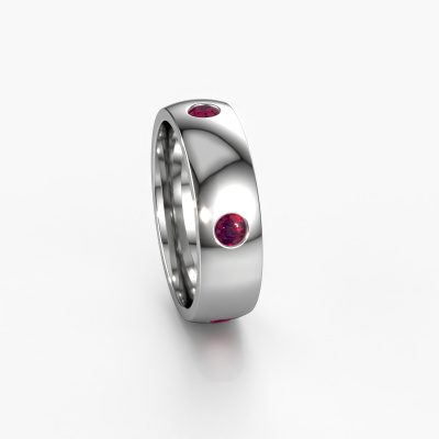 A truly stylish exclusive wedding ring! This exquisite ladies wedding ring, as shown above, is set with round rhodolite. Our goldsmiths make each platinum wedding ring by hand in our own artisan studio and because of that, the rhodolite are set with the utmost precision. This causes light to reflect evenly from every angle of the rhodolite. The width of this exclusive WH0104L26BP wedding ring is ±0.24 in and the finish is shiny. Gold represents love and therefore our goldsmith loves using it in the design of your exclusive wedding ring. We are a proud member of the Responsible Jewellery Council. This means we only use eco-friendly gold. Something we take great pride in, obviously. It is also possible to use your own gold in the design of your wedding ring. Each jewel is made by hand in our own artisan studio so we can offer this option. This gives you the opportunity to add an extra personal touch to your ring. A ring with its own history!By the way, you can be inspired by this wedding ring and have it further adjusted to your taste. Do you prefer a smaller band or a wider one? Do you prefer a shiny ring or a matte one? Anything is possible. Also, if you have an idea of your own for extraordinary wedding rings, or if you have seen a beautiful set somewhere else that you really like and would like to have adjusted to your personal taste: no problem! don't hesitate to contact us. Our designers will gladly discuss your possibilities with you!Because we design our wedding rings ourselves, and deliver it directly to you, we can offer you wedding rings at a price you won't find anywhere else. Our rings are made to order, which helps prevent excess supplies, so we can make you a great price offer.To make it easier for you, we offer a 30 day return policy. Check our terms and conditions.