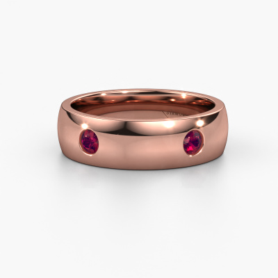 A truly stylish 14 Carat exclusive wedding ring! This exquisite ladies wedding ring, as shown above, is set with round rhodolite. Our goldsmiths make each rose gold wedding ring by hand in our own artisan studio and because of that, the rhodolite are set with the utmost precision. This causes light to reflect evenly from every angle of the rhodolite. The width of this exclusive WH0104L26BP wedding ring is ±0.24 in and the finish is shiny. Gold represents love and therefore our goldsmith loves using it in the design of your exclusive wedding ring. We are a proud member of the Responsible Jewellery Council. This means we only use eco-friendly gold. Something we take great pride in, obviously. It is also possible to use your own gold in the design of your wedding ring. Each jewel is made by hand in our own artisan studio so we can offer this option. This gives you the opportunity to add an extra personal touch to your ring. A ring with its own history!By the way, you can be inspired by this wedding ring and have it further adjusted to your taste. Do you prefer a smaller band or a wider one? Do you prefer a shiny ring or a matte one? Anything is possible. Also, if you have an idea of your own for extraordinary wedding rings, or if you have seen a beautiful set somewhere else that you really like and would like to have adjusted to your personal taste: no problem! don't hesitate to contact us. Our designers will gladly discuss your possibilities with you!Because we design our wedding rings ourselves, and deliver it directly to you, we can offer you wedding rings at a price you won't find anywhere else. Our rings are made to order, which helps prevent excess supplies, so we can make you a great price offer.To make it easier for you, we offer a 30 day return policy. Check our terms and conditions.