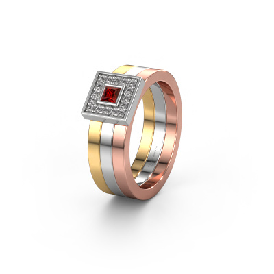 An extraordinary royal ladies wedding ring! As unique as your relationship! No two people are alike and that is why you want a unique wedding ring. This fantasy WH2104L wedding ring is made by our jewel designers and crafted by hand by our goldsmith. In that process, We use pure craftsmanship combined with the latest techniques to achieve the best result. Our goldsmith strives for absolute perfection. A unique, handmade wedding ring, made to memorialize your big day! This fantasy WH2104L wedding ring is set with garnet, is ±0.24 in wide and has a shiny finish. After designing your ring, our jewel designer will start working on it. He will make a graphic 3D design of your wedding ring. This can also be used to make a dummy ring. Simply order a dummy ring and see for yourself how your ring will turn out. Subsequently, our expert goldsmith will create your ring in our own artisan studio. We use eco-friendly gold, so you get a ring, we are proud of, which looks good inside and out. You can also send us your own gold. Because we create your ring by hand, we can use your own gold. Our goal is to create an exquisite sparkling wedding ring just as envisioned it!Do you have special preferences regarding your wedding ring? For instance, a smaller or a wider band? Or perhaps a shiny or a matte ring? There are numerous variations possible. You can always discuss the possibilities with our jewellery designers. If you have certain wedding rings in mind, our designers will gladly help by drawing the rings of your dreams. Be sure to contact us!By combining our modern techniques with ancient crafting, we can design and customize the finest quality jewels with the utmost care for you at the best price. Our wedding rings are always priced 30% lower than those of other jewellers. We make wedding rings to order so we don't have to maintain a large stock.To make it easier for you, we offer a 30 day return policy. Check our terms and conditions.