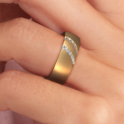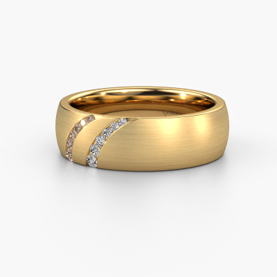 To create your ladies wedding ring in our artisan studio, we use the most modern techniques, combined with ancient craftsmanship. The end result is this modern WH2015L wedding ring, which is crafted to perfection by hand by our goldsmiths. A ring that fills us with pride. This gold WH2015L ladies wedding ring with court profile has an ±0.26 in width and has a matte finish with brown diamond. You can choose the combination of precious metals of your preference in our online tool. Anything goes! It is wise to browse through the characteristics of each different precious metal. For example, gold and silver are softer metals. Carat is determined by the amount of added extra metals. If the goldsmith doesn't add a lot, carat is higher and the wedding ring will be softer. If he adds more metals, the jewel has a lower amount of carat. A softer precious metal can still be used for your modern wedding ring! If you prefer a precious metal which will last a lifetime, we recommend platinum. This is the most solid and durable metal our goldsmith uses.Do you have specific wishes regarding your wedding ring, but are you having difficulties finding the design on our website? The be sure to contact our designers! For instance, we can make the band smaller or wider. Do you prefer a matte finish? We can do that! Engravings are a great way of personalizing your rings, and applicable on most designs. Or, if you have an idea of your own for your extraordinary wedding rings, contact us! Our designers are up for the challenge of designing the ring of your dreams!After receiving your order, our goldsmiths will passionately start the creative process of making your wedding rings in our own artisan studio. Because we do not maintain a large stockpile, we can offer our jewellery at a lower price than other jewellers. Our pricing is proof of that! We offer top quality jewels at lowest price, guaranteed.To make it easier for you, we offer a 30 day return policy. Check our terms and conditions.
