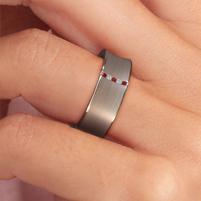An extraordinary special ladies wedding ring! As unique as your relationship! No two people are alike and that is why you want a unique wedding ring. This modern WH2021B wedding ring is made by our jewel designers and crafted by hand by our goldsmith. In that process, We use pure craftsmanship combined with the latest techniques to achieve the best result. Our goldsmith strives for absolute perfection. A unique, handmade wedding ring, made to memorialize your big day! This modern WH2021B wedding ring is set with ruby, is ±0.28 in wide and has a mat/shiny finish. Gold represents love and therefore our goldsmith loves using it in the design of your modern wedding ring. We are a proud member of the Responsible Jewellery Council. This means we only use eco-friendly gold. Something we take great pride in, obviously. It is also possible to use your own gold in the design of your wedding ring. Each jewel is made by hand in our own artisan studio so we can offer this option. This gives you the opportunity to add an extra personal touch to your ring. A ring with its own history!Do you have special preferences regarding your wedding ring? For instance, a smaller or a wider band? Or perhaps a shiny or a matte ring? There are numerous variations possible. You can always discuss the possibilities with our jewellery designers. If you have certain wedding rings in mind, our designers will gladly help by drawing the rings of your dreams. Be sure to contact us!Because we design and deliver our own wedding rings, we can offer you wedding rings at a price you won't find anywhere else. A ring is made to order, which helps prevent excess supplies, so we can make you a great price offer.To make it easier for you, we offer a 30 day return policy. Check our terms and conditions.