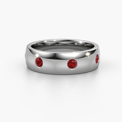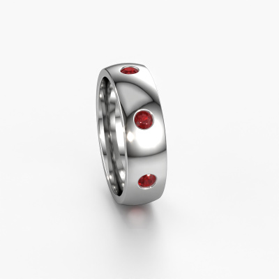 To create your ladies wedding ring in our artisan studio, we use the most modern techniques, combined with ancient craftsmanship. The end result is this modern WH0105L26BP wedding ring, which is crafted to perfection by hand by our goldsmiths. A ring that fills us with pride. This white gold WH0105L26BP ladies wedding ring with court profile has an ±0.24 in width and has a shiny finish with ruby. After ordering your wedding ring, our goldsmith will start creating your wedding ring immediately. Did you know we use the latest modern techniques, combined with ancient craftsmanship? This helps to create a 3D design of your jewel. You can order a dummy ring, if you please. This way you can check if the wedding ring meets your standard. Then, our goldsmith, who strives for perfection, will create your ring in our own artisan studio completely by hand. We feel passionate creating a unique ring each time. One which is finished to perfection. In the end, you get a wedding ring which matches your wishes.Be inspired by our designs, and adjust this wedding ring to your own personal taste: wider or smaller, shiny or matte? No problem! Even if you have ideas of your own for special wedding rings, our jewellery designers are lined up to help you design the ring of your dreams. don't hesitate to contact us!After receiving your order, our goldsmiths will start the creative process of making your wedding rings in our own crafting studio. We don't keep stock. This is advantageous because these costs will not be passed on to you. Therefore, we can offer the finest quality jewellery at exceptionally low prices.To make it easier for you, we offer a 30 day return policy. Check our terms and conditions.