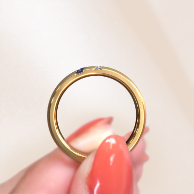 To create your ladies wedding ring in our artisan studio, we use the most modern techniques, combined with ancient craftsmanship. The end result is this modern WH2015L wedding ring, which is crafted to perfection by hand by our goldsmiths. A ring that fills us with pride. This gold WH2015L ladies wedding ring with court profile has an ±0.26 in width and has a matte finish with sapphire. You can choose the combination of precious metals of your preference in our online tool. Anything goes! It is wise to browse through the characteristics of each different precious metal. For example, gold and silver are softer metals. Carat is determined by the amount of added extra metals. If the goldsmith doesn't add a lot, carat is higher and the wedding ring will be softer. If he adds more metals, the jewel has a lower amount of carat. A softer precious metal can still be used for your modern wedding ring! If you prefer a precious metal which will last a lifetime, we recommend platinum. This is the most solid and durable metal our goldsmith uses.Do you have specific wishes regarding your wedding ring, but are you having difficulties finding the design on our website? The be sure to contact our designers! For instance, we can make the band smaller or wider. Do you prefer a matte finish? We can do that! Engravings are a great way of personalizing your rings, and applicable on most designs. Or, if you have an idea of your own for your extraordinary wedding rings, contact us! Our designers are up for the challenge of designing the ring of your dreams!After receiving your order, our goldsmiths will passionately start the creative process of making your wedding rings in our own artisan studio. Because we do not maintain a large stockpile, we can offer our jewellery at a lower price than other jewellers. Our pricing is proof of that! We offer top quality jewels at lowest price, guaranteed.To make it easier for you, we offer a 30 day return policy. Check our terms and conditions.