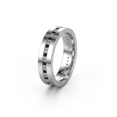 The exclusive Eternity wedding ring is a ring with a beautiful symbolic meaning. Because there appears to be no beginning nor end to the row of black diamonds. A beautiful way of expressing your everlasting love. A ring to wear until the end of all time, as a symbol of your union. This special WH0103L15BP ladies wedding ring has a width of ±0.20 in and is set with black diamond 0.484 crt. The jewel designer, member of a specialized team, will make a graphic 3D design of your wedding ring. If it pleases you, you can also order a ring dummy so you can try it on and see your ring before creation. Subsequently, our goldsmith will create your unique wedding ring with great care in our own crafting studio. A meticulous job, because both creating as well as finishing your ring requires a keen eye. And that is what makes our craft special. Your unique wedding ring is the result of true passionate craftsmanship!Do you have specific wishes? Like a shiny ring, or a matte one? A wider band, or a smaller one? The possibilities of this wedding ring are endless. Be sure to contact our designers to adjust your ring to your personal taste. Did you see a ring somewhere, or do you have some special ideas of your own? Then don't hesitate to contact our designers and discuss your ideas for your own set of beautiful wedding rings. We are up for the challenge of creating the ring exactly the way you want it!After receiving your order, our goldsmiths will passionately start the creative process of making your wedding rings in our own artisan studio. Because we do not maintain a large stockpile, we can offer our jewellery at a lower price than other jewellers. Our pricing is proof of that! We offer top quality jewels at lowest price, guaranteed.To make it easier for you, we offer a 30 day return policy. Check our terms and conditions.