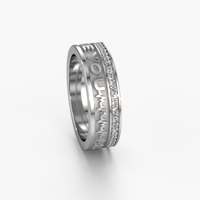This ladies wedding ring with a personal inscription is a truly unique wedding ring. A personal text, words with meaning, is what makes this a truly unique personal item. Part of lyrics to a special song, a special word or the name of a loved one. Make your platinum wedding ring as personal as possible. More regarding a personal engraving can be found in our databank, at the bottom of this page. This Namering 3 wedding ring for ladies has a width of ±0.24 in. Gold represents love and therefore our goldsmith loves using it in the design of your exclusive wedding ring. We are a proud member of the Responsible Jewellery Council. This means we only use eco-friendly gold. Something we take great pride in, obviously. It is also possible to use your own gold in the design of your wedding ring. Each jewel is made by hand in our own artisan studio so we can offer this option. This gives you the opportunity to add an extra personal touch to your ring. A ring with its own history!By the way, you can be inspired by this wedding ring and have it further adjusted to your taste. Do you prefer a smaller band or a wider one? Do you prefer a shiny ring or a matte one? Anything is possible. Also, if you have an idea of your own for extraordinary wedding rings, or if you have seen a beautiful set somewhere else that you really like and would like to have adjusted to your personal taste: no problem! don't hesitate to contact us. Our designers will gladly discuss your possibilities with you!Because we design our wedding rings ourselves, and deliver it directly to you, we can offer you wedding rings at a price you won't find anywhere else. Our rings are made to order, which helps prevent excess supplies, so we can make you a great price offer.To make it easier for you, we offer a 30 day return policy. Check our terms and conditions.