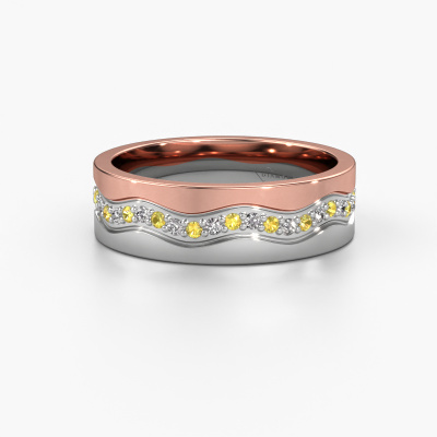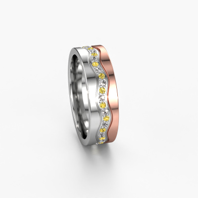The exclusive Eternity wedding ring is a ring with a beautiful symbolic meaning. Because there appears to be no beginning nor end to the row of yellow sapphire. A beautiful way of expressing your everlasting love. A ring to wear until the end of all time, as a symbol of your union. This wavy details WH0803L16AP ladies wedding ring has a width of ±0.24 in and is set with yellow sapphire 1.3 mm. After designing your ring, our jewel designer will start working on it. He will make a graphic 3D design of your wedding ring. This can also be used to make a dummy ring. Simply order a dummy ring and see for yourself how your ring will turn out. Subsequently, our expert goldsmith will create your ring in our own artisan studio. We use eco-friendly gold, so you get a ring, we are proud of, which looks good inside and out. You can also send us your own gold. Because we create your ring by hand, we can use your own gold. Our goal is to create an exquisite sparkling wedding ring just as envisioned it!Do you have specific wishes regarding your wedding ring, but are you having difficulties finding the design on our website? The be sure to contact our designers! For instance, we can make the band smaller or wider. Do you prefer a matte finish? We can do that! Engravings are a great way of personalizing your rings, and applicable on most designs. Or, if you have an idea of your own for your extraordinary wedding rings, contact us! Our designers are up for the challenge of designing the ring of your dreams!After receiving your order, our goldsmiths will start the creative process of making your wedding rings. We don't keep stock. This is advantageous because these costs will not be passed on to you. Therefore, our quality wedding rings are always priced 30 percent lower than those of other jewellers.To make it easier for you, we offer a 30 day return policy. Check our terms and conditions.