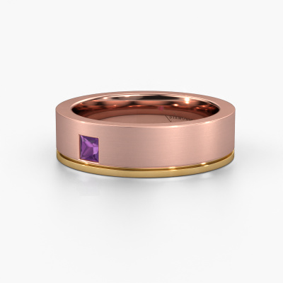 A truly stylish 14 Carat modern wedding ring! This exquisite ladies wedding ring, as shown above, is set with princess amethyst. Our goldsmiths make each rose gold wedding ring by hand in our own artisan studio and because of that, the amethysten are set with the utmost precision. This causes light to reflect evenly from every angle of the amethyst. The width of this modern WH0550L16CMP wedding ring is ±0.24 in and the finish is mat/shiny. The jewel designer, member of a specialized team, will make a graphic 3D design of your wedding ring. If it pleases you, you can also order a ring dummy so you can try it on and see your ring before creation. Subsequently, our goldsmith will create your unique wedding ring with great care in our own crafting studio. A meticulous job, because both creating as well as finishing your ring requires a keen eye. And that is what makes our craft special. Your unique wedding ring is the result of true passionate craftsmanship!Be inspired by our designs, and adjust this wedding ring to your own personal taste: wider or smaller, shiny or matte? No problem! Even if you have ideas of your own for special wedding rings, our jewellery designers are lined up to help you design the ring of your dreams. don't hesitate to contact us!After receiving your order, our goldsmiths will start the creative process of making your wedding rings. We don't keep stock. This is advantageous because these costs will not be passed on to you. Therefore, our quality wedding rings are always priced 30 percent lower than those of other jewellers.To make it easier for you, we offer a 30 day return policy. Check our terms and conditions.