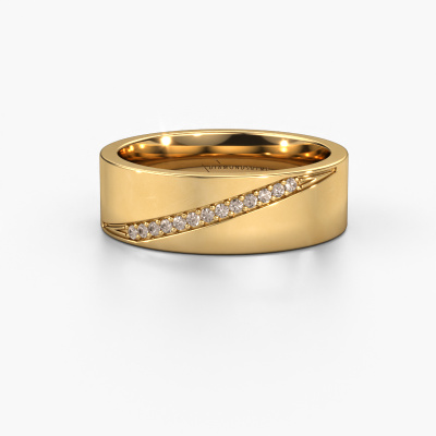 A truly stylish 14 Carat modern wedding ring! This exquisite ladies wedding ring, as shown above, is set with round brown diamond. Our goldsmiths make each gold wedding ring by hand in our own artisan studio and because of that, the brown diamonds are set with the utmost precision. This causes light to reflect evenly from every angle of the brown diamond. The width of this modern WH2146L17A wedding ring is ±0.28 in and the finish is shiny. The jewel designer, member of a specialized team, will make a graphic 3D design of your wedding ring. If it pleases you, you can also order a ring dummy so you can try it on and see your ring before creation. Subsequently, our goldsmith will create your unique wedding ring with great care in our own crafting studio. A meticulous job, because both creating as well as finishing your ring requires a keen eye. And that is what makes our craft special. Your unique wedding ring is the result of true passionate craftsmanship!Do you have specific wishes? Like a shiny ring, or a matte one? A wider band, or a smaller one? The possibilities of this wedding ring are endless. Be sure to contact our designers to adjust your ring to your personal taste. Did you see a ring somewhere, or do you have some special ideas of your own? Then don't hesitate to contact our designers and discuss your ideas for your own set of beautiful wedding rings. We are up for the challenge of creating the ring exactly the way you want it!Because we design our wedding rings ourselves, and deliver it directly to you, we can offer you wedding rings at a price you won't find anywhere else. Our rings are made to order, which helps prevent excess supplies, so we can make you a great price offer.To make it easier for you, we offer a 30 day return policy. Check our terms and conditions.
