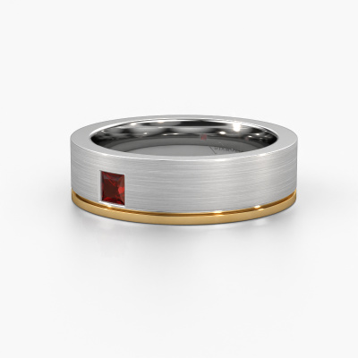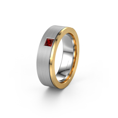 A truly stylish 14 Carat modern wedding ring! This exquisite ladies wedding ring, as shown above, is set with princess garnet. Our goldsmiths make each white gold wedding ring by hand in our own artisan studio and because of that, the garnet are set with the utmost precision. This causes light to reflect evenly from every angle of the garnet. The width of this modern WH0550L16CMP wedding ring is ±0.24 in and the finish is mat/shiny. The jewel designer, member of a specialized team, will make a graphic 3D design of your wedding ring. If it pleases you, you can also order a ring dummy so you can try it on and see your ring before creation. Subsequently, our goldsmith will create your unique wedding ring with great care in our own crafting studio. A meticulous job, because both creating as well as finishing your ring requires a keen eye. And that is what makes our craft special. Your unique wedding ring is the result of true passionate craftsmanship!Be inspired by our designs, and adjust this wedding ring to your own personal taste: wider or smaller, shiny or matte? No problem! Even if you have ideas of your own for special wedding rings, our jewellery designers are lined up to help you design the ring of your dreams. don't hesitate to contact us!After receiving your order, our goldsmiths will start the creative process of making your wedding rings. We don't keep stock. This is advantageous because these costs will not be passed on to you. Therefore, our quality wedding rings are always priced 30 percent lower than those of other jewellers.To make it easier for you, we offer a 30 day return policy. Check our terms and conditions.