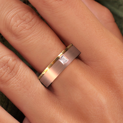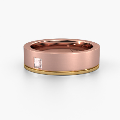 A truly stylish 14 Carat modern wedding ring! This exquisite ladies wedding ring, as shown above, is set with princess morganite champagne. Our goldsmiths make each rose gold wedding ring by hand in our own artisan studio and because of that, the morganite champagne are set with the utmost precision. This causes light to reflect evenly from every angle of the morganite champagne. The width of this modern WH0550L16CMP wedding ring is ±0.24 in and the finish is mat/shiny.