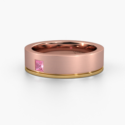 A truly stylish 14 Carat modern wedding ring! This exquisite ladies wedding ring, as shown above, is set with princess pink sapphire. Our goldsmiths make each rose gold wedding ring by hand in our own artisan studio and because of that, the pink sapphire are set with the utmost precision. This causes light to reflect evenly from every angle of the pink sapphire. The width of this modern WH0550L16CMP wedding ring is ±0.24 in and the finish is mat/shiny. The jewel designer, member of a specialized team, will make a graphic 3D design of your wedding ring. If it pleases you, you can also order a ring dummy so you can try it on and see your ring before creation. Subsequently, our goldsmith will create your unique wedding ring with great care in our own crafting studio. A meticulous job, because both creating as well as finishing your ring requires a keen eye. And that is what makes our craft special. Your unique wedding ring is the result of true passionate craftsmanship!Be inspired by our designs, and adjust this wedding ring to your own personal taste: wider or smaller, shiny or matte? No problem! Even if you have ideas of your own for special wedding rings, our jewellery designers are lined up to help you design the ring of your dreams. don't hesitate to contact us!After receiving your order, our goldsmiths will start the creative process of making your wedding rings. We don't keep stock. This is advantageous because these costs will not be passed on to you. Therefore, our quality wedding rings are always priced 30 percent lower than those of other jewellers.To make it easier for you, we offer a 30 day return policy. Check our terms and conditions.