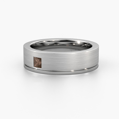 A truly stylish modern wedding ring! This exquisite ladies wedding ring, as shown above, is set with princess smokey quartz. Our goldsmiths make each platinum wedding ring by hand in our own artisan studio and because of that, the smokey quartz are set with the utmost precision. This causes light to reflect evenly from every angle of the smokey quartz. The width of this modern WH0550L16CMP wedding ring is ±0.24 in and the finish is mat/shiny. The jewel designer, member of a specialized team, will make a graphic 3D design of your wedding ring. If it pleases you, you can also order a ring dummy so you can try it on and see your ring before creation. Subsequently, our goldsmith will create your unique wedding ring with great care in our own crafting studio. A meticulous job, because both creating as well as finishing your ring requires a keen eye. And that is what makes our craft special. Your unique wedding ring is the result of true passionate craftsmanship!Be inspired by our designs, and adjust this wedding ring to your own personal taste: wider or smaller, shiny or matte? No problem! Even if you have ideas of your own for special wedding rings, our jewellery designers are lined up to help you design the ring of your dreams. don't hesitate to contact us!After receiving your order, our goldsmiths will start the creative process of making your wedding rings. We don't keep stock. This is advantageous because these costs will not be passed on to you. Therefore, our quality wedding rings are always priced 30 percent lower than those of other jewellers.To make it easier for you, we offer a 30 day return policy. Check our terms and conditions.
