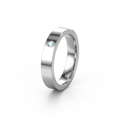 To create your ladies weddings ring in our artisan studio, we use the most modern techniques, combined with ancient craftsmanship. The end result is this modern WH0101L14BP weddings ring, which is crafted to perfection by hand by our goldsmiths. A ring that fills us with pride. This white gold WH0101L14BP ladies weddings ring with flat profile has an ±0.16 in width and has a shiny finish with aquamarine. After designing your ring, our jewel designer will start working on it. He will make a graphic 3D design of your weddings ring. This can also be used to make a dummy ring. Simply order a dummy ring and see for yourself how your ring will turn out. Subsequently, our expert goldsmith will create your ring in our own artisan studio. We use eco-friendly gold, so you get a ring, we are proud of, which looks good inside and out. You can also send us your own gold. Because we create your ring by hand, we can use your own gold. Our goal is to create an exquisite sparkling weddings ring just as envisioned it!Do you have special preferences regarding your weddings ring? For instance, a smaller or a wider band? Or perhaps a shiny or a matte ring? There are numerous variations possible. You can always discuss the possibilities with our jewellery designers. If you have certain wedding rings in mind, our designers will gladly help by drawing the rings of your dreams. Be sure to contact us!Because we design our wedding rings ourselves, and deliver it directly to you, we can offer you wedding rings at a price you won't find anywhere else. Our rings are made to order, which helps prevent excess supplies, so we can make you a great price offer.To make it easier for you, we offer a 30 day return policy. Check our terms and conditions.