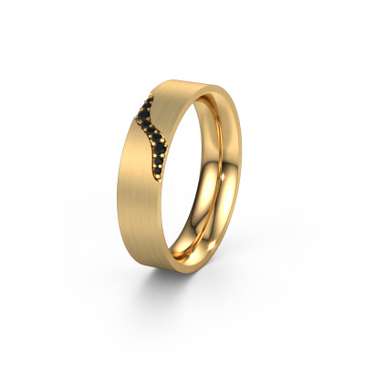 To create your ladies wedding ring in our artisan studio, we use the most modern techniques, combined with ancient craftsmanship. The end result is this contemporary WH2100L46BM wedding ring, which is crafted to perfection by hand by our goldsmiths. A ring that fills us with pride. This gold WH2100L46BM ladies wedding ring with flat profile has an ±0.24 in width and has a mat/shiny finish with black diamond. After designing your ring, our jewel designer will start working on it. He will make a graphic 3D design of your wedding ring. This can also be used to make a dummy ring. Simply order a dummy ring and see for yourself how your ring will turn out. Subsequently, our expert goldsmith will create your ring in our own artisan studio. We use eco-friendly gold, so you get a ring, we are proud of, which looks good inside and out. You can also send us your own gold. Because we create your ring by hand, we can use your own gold. Our goal is to create an exquisite sparkling wedding ring just as envisioned it!Do you have special preferences regarding your wedding ring? For instance, a smaller or a wider band? Or perhaps a shiny or a matte ring? There are numerous variations possible. You can always discuss the possibilities with our jewellery designers. If you have certain wedding rings in mind, our designers will gladly help by drawing the rings of your dreams. Be sure to contact us!After receiving your order, our goldsmiths will start the creative process of making your wedding rings in our own crafting studio. We don't keep stock. This is advantageous because these costs will not be passed on to you. Therefore, we can offer the finest quality jewellery at exceptionally low prices.To make it easier for you, we offer a 30 day return policy. Check our terms and conditions.