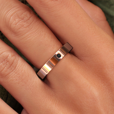 To create your ladies weddings ring in our artisan studio, we use the most modern techniques, combined with ancient craftsmanship. The end result is this modern WH0101L14BP weddings ring, which is crafted to perfection by hand by our goldsmiths. A ring that fills us with pride. This rose gold WH0101L14BP ladies weddings ring with flat profile has an ±0.16 in width and has a shiny finish with black diamond. After designing your ring, our jewel designer will start working on it. He will make a graphic 3D design of your weddings ring. This can also be used to make a dummy ring. Simply order a dummy ring and see for yourself how your ring will turn out. Subsequently, our expert goldsmith will create your ring in our own artisan studio. We use eco-friendly gold, so you get a ring, we are proud of, which looks good inside and out. You can also send us your own gold. Because we create your ring by hand, we can use your own gold. Our goal is to create an exquisite sparkling weddings ring just as envisioned it!Do you have special preferences regarding your weddings ring? For instance, a smaller or a wider band? Or perhaps a shiny or a matte ring? There are numerous variations possible. You can always discuss the possibilities with our jewellery designers. If you have certain wedding rings in mind, our designers will gladly help by drawing the rings of your dreams. Be sure to contact us!Because we design our wedding rings ourselves, and deliver it directly to you, we can offer you wedding rings at a price you won't find anywhere else. Our rings are made to order, which helps prevent excess supplies, so we can make you a great price offer.To make it easier for you, we offer a 30 day return policy. Check our terms and conditions.