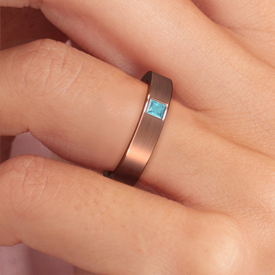 To create your ladies friendship ring in our artisan studio, we use the most modern techniques, combined with ancient craftsmanship. The end result is this modern WH0101L14BMSQ friendship ring, which is crafted to perfection by hand by our goldsmiths. A ring that fills us with pride. This rose gold WH0101L14BMSQ ladies friendship ring with flat profile has an ±0.16 in width and has a matte finish with blue topaz. Choosing a wedding ring is not done on a whim. In the end, you want a ring that completely matches your style and preferences. A reflection of your love and relationship. A ring to last a lifetime. A symbol of all that unites you. Creating your dream ring is what gets us excited. This is artfully done by hand in our own crafting studio, so we can create your ring to perfection. The most rewarding job in the world!Do you have special preferences regarding your friendship ring? For instance, a smaller or a wider band? Or perhaps a shiny or a matte ring? There are numerous variations possible. You can always discuss the possibilities with our jewellery designers. If you have certain friendship rings in mind, our designers will gladly help by drawing the rings of your dreams. Be sure to contact us!Because we design and deliver our own friendship rings, we can offer you friendship rings at a price you won't find anywhere else. A ring is made to order, which helps prevent excess supplies, so we can make you a great price offer.To make it easier for you, we offer a 30 day return policy. Check our terms and conditions.