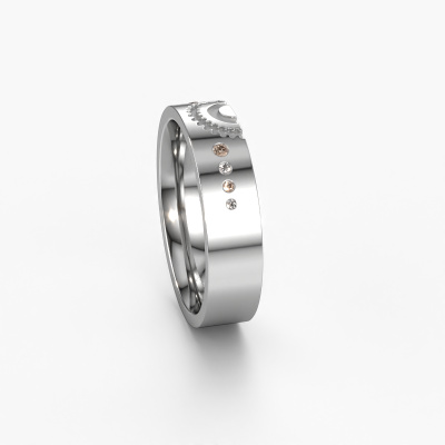 An extraordinary symbolic ladies wedding ring! As unique as your relationship! No two people are alike and that is why you want a unique wedding ring. This fantasy WH2116L25A wedding ring is made by our jewel designers and crafted by hand by our goldsmith. In that process, We use pure craftsmanship combined with the latest techniques to achieve the best result. Our goldsmith strives for absolute perfection. A unique, handmade wedding ring, made to memorialize your big day! This fantasy WH2116L25A wedding ring is set with brown diamond, is ±0.20 in wide and has a shiny finish. You can choose the combination of precious metals of your preference in our online tool. Anything goes! It is wise to browse through the characteristics of each different precious metal. For example, gold and silver are softer metals. Carat is determined by the amount of added extra metals. If the goldsmith doesn't add a lot, carat is higher and the wedding ring will be softer. If he adds more metals, the jewel has a lower amount of carat. A softer precious metal can still be used for your fantasy wedding ring! If you prefer a precious metal which will last a lifetime, we recommend platinum. This is the most solid and durable metal our goldsmith uses.By the way, you can be inspired by this wedding ring and have it further adjusted to your taste. Do you prefer a smaller band or a wider one? Do you prefer a shiny ring or a matte one? Anything is possible. Also, if you have an idea of your own for extraordinary wedding rings, or if you have seen a beautiful set somewhere else that you really like and would like to have adjusted to your personal taste: no problem! don't hesitate to contact us. Our designers will gladly discuss your possibilities with you!After receiving your order, our goldsmiths will passionately start the creative process of making your wedding rings in our own artisan studio. Because we do not maintain a large stockpile, we can offer our jewellery at a lower price than other jewellers. Our pricing is proof of that! We offer top quality jewels at lowest price, guaranteed.To make it easier for you, we offer a 30 day return policy. Check our terms and conditions.