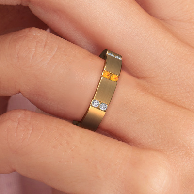 This modern ladies wedding ring is a stunning, contemporary wedding ring which truly symbolizes your unique love! Perfectly suited for men with a contemporary style. Simply customize the ring to your liking. Our goldsmith would take on any challenge of creating a perfect ring and will work on your ring, designed by you, in our own artisan studio. He will carefully and passionately create your WH2133L14BM wedding ring by hand whilst using the most modern techniques, combined with pure craftsmanship. And this results in a unique, contemporary ring! This modern WH2133L14BM wedding ring is set with round citrin, is ±0.16 in wide and has a mat/shiny finish. You can choose the combination of precious metals of your preference in our online tool. Anything goes! It is wise to browse through the characteristics of each different precious metal. For example, gold and silver are softer metals. Carat is determined by the amount of added extra metals. If the goldsmith doesn't add a lot, carat is higher and the wedding ring will be softer. If he adds more metals, the jewel has a lower amount of carat. A softer precious metal can still be used for your modern wedding ring! If you prefer a precious metal which will last a lifetime, we recommend platinum. This is the most solid and durable metal our goldsmith uses.Do you have specific wishes regarding your wedding ring, but are you having difficulties finding the design on our website? The be sure to contact our designers! For instance, we can make the band smaller or wider. Do you prefer a matte finish? We can do that! Engravings are a great way of personalizing your rings, and applicable on most designs. Or, if you have an idea of your own for your extraordinary wedding rings, contact us! Our designers are up for the challenge of designing the ring of your dreams!Because we design our wedding rings ourselves, and deliver it directly to you, we can offer you wedding rings at a price you won't find anywhere else. Our rings are made to order, which helps prevent excess supplies, so we can make you a great price offer.To make it easier for you, we offer a 30 day return policy. Check our terms and conditions.