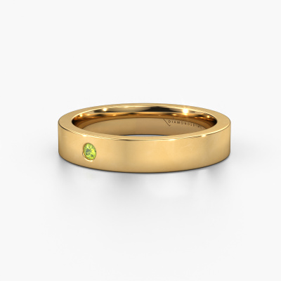 To create your ladies weddings ring in our artisan studio, we use the most modern techniques, combined with ancient craftsmanship. The end result is this modern WH0101L14BP weddings ring, which is crafted to perfection by hand by our goldsmiths. A ring that fills us with pride. This gold WH0101L14BP ladies weddings ring with flat profile has an ±0.16 in width and has a shiny finish with peridot. After designing your ring, our jewel designer will start working on it. He will make a graphic 3D design of your weddings ring. This can also be used to make a dummy ring. Simply order a dummy ring and see for yourself how your ring will turn out. Subsequently, our expert goldsmith will create your ring in our own artisan studio. We use eco-friendly gold, so you get a ring, we are proud of, which looks good inside and out. You can also send us your own gold. Because we create your ring by hand, we can use your own gold. Our goal is to create an exquisite sparkling weddings ring just as envisioned it!Do you have special preferences regarding your weddings ring? For instance, a smaller or a wider band? Or perhaps a shiny or a matte ring? There are numerous variations possible. You can always discuss the possibilities with our jewellery designers. If you have certain wedding rings in mind, our designers will gladly help by drawing the rings of your dreams. Be sure to contact us!Because we design our wedding rings ourselves, and deliver it directly to you, we can offer you wedding rings at a price you won't find anywhere else. Our rings are made to order, which helps prevent excess supplies, so we can make you a great price offer.To make it easier for you, we offer a 30 day return policy. Check our terms and conditions.