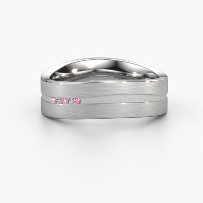 An extraordinary heavy ladies wedding ring! As unique as your relationship! No two people are alike and that is why you want a unique wedding ring. This fashionable WH2019P wedding ring is made by our jewel designers and crafted by hand by our goldsmith. In that process, We use pure craftsmanship combined with the latest techniques to achieve the best result. Our goldsmith strives for absolute perfection. A unique, handmade wedding ring, made to memorialize your big day! This fashionable WH2019P wedding ring is set with pink sapphire, is ±0.24 in wide and has a matte finish.