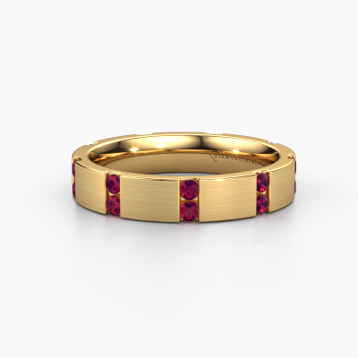 This modern ladies weddings ring is a stunning, contemporary weddings ring which truly symbolizes your unique love! Perfectly suited for men with a contemporary style. Simply customize the ring to your liking. Our goldsmith would take on any challenge of creating a perfect ring and will work on your ring, designed by you, in our own artisan studio. He will carefully and passionately create your WH2132L14BM weddings ring by hand whilst using the most modern techniques, combined with pure craftsmanship. And this results in a unique, contemporary ring! This modern WH2132L14BM weddings ring is set with round rhodolite, is ±0.16 in wide and has a mat/shiny finish. Choosing a wedding ring is not done on a whim. In the end, you want a ring that completely matches your style and preferences. A reflection of your love and relationship. A ring to last a lifetime. A symbol of all that unites you. Creating your dream ring is what gets us excited. This is artfully done by hand in our own crafting studio, so we can create your ring to perfection. The most rewarding job in the world!By the way, you can be inspired by this weddings ring and have it further adjusted to your taste. Do you prefer a smaller band or a wider one? Do you prefer a shiny ring or a matte one? Anything is possible. Also, if you have an idea of your own for extraordinary wedding rings, or if you have seen a beautiful set somewhere else that you really like and would like to have adjusted to your personal taste: no problem! don't hesitate to contact us. Our designers will gladly discuss your possibilities with you!By combining our modern techniques with ancient crafting, we can design and customize the finest quality jewels with the utmost care for you at the best price. Our wedding rings are always priced 30% lower than those of other jewellers. We make wedding rings to order so we don't have to maintain a large stock.To make it easier for you, we offer a 30 day return policy. Check our terms and conditions.